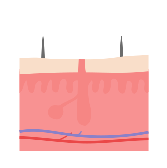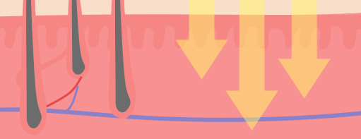 파워풀한 에너지를 깊이까지 침투시켜 털이 자라는데 영향을 주는 모낭의 기능을 영구적으로 정지 시킵니다. 또한 피부 1mm 안쪽의 여성수염부터 무려 5mm까지에 이르는 머리카락까지 신체 모든 부위와 굵기의 털에 대응합니다.