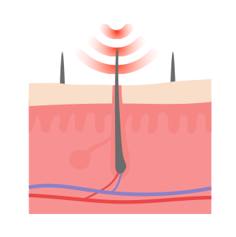 레이저 빛은 털 모근의 멜라닌 색소를 선택적으로 흡수하고, 열에너지로 전환하여 성장기 모낭의 멜라닌 색소와 줄기세포를 선택적으로 제거하게 됩니다.